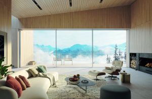 Sisteme pentru elemente inalte de la podea la tavan, usi pliante, usi glisante, elemente rabatabile, pivotante precum si uluitoarele fatade Freeform isi gasesc locul aici. O noutate este sistemul glisant Panorama Design Schüco AS PD 75.HI, o solutie cu prag fara bariere cu actionare mecatronica.