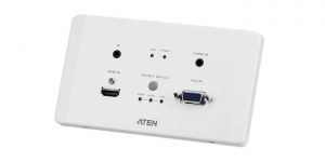 ATEN HDMI & VGA HDBaseT Transmitter with EU Wall Plate / PoH (4K@100m) (HDBaseT Class A) (VE2812AEUT) este o solutie cu montare pe perete pentru transmiterea semnalelor VGA (cu continut audio) si HDMI pe distante de pana la 100m, prin intermediul unui singur cablu Cat 5e/6/6a.