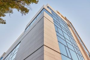 Fatadele ale acestei cladiri sunt acoperite cu unitati de vitraj triplu, unde pelicula exterioara este sticla SunGuard® SN 70/35, care ajuta la reducerea nevoii de lumina artificiala si ofera o combinatie excelenta intre protectie solara si izolare termica eficienta. De asemenea, are un factor solar ridicat de 32% si o transmisie ridicata a luminii de 62% pe intregul ansamblu vitrat. Stratul intermediar de sticla este Guardian® ExtraClear iar, pentru cel interior, arhitectii au folosit ClimaGuard® Premium 2 pentru un plus de izolatie termica. Performanta generala al acestui vitraj triplu termoizolant a fost atinsa, conform cerintelor proprietarilor: eficienta energetica, multa lumina naturala in interior, blocand in acelasi timp o cantitate mare de caldura.