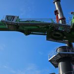 Utilajul de 320 tone, are un brat care asigura o raza de lucru de 38 de metri si poate ridica sarcini intre 17 t si 35 t cu o productivitate de pana la 1.200 de tone pe ora