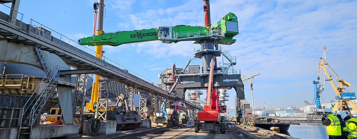 Un nou utilaj, puternic, de manipulare asigura operatiuni mai eficiente ale navelor in Portul Constanta din Romania, SENNEBOGEN 885 G, operat de ADM North Star Shipping, si ofera o solutie optima pentru manipularea materialelor intre nava, cale ferata si depozit. Cu o tehnologie de ultima ora si un concept de siguranta bine gandit, utilajul stabileste noi standarde in ceea ce priveste performanta si confortul operatorului.
