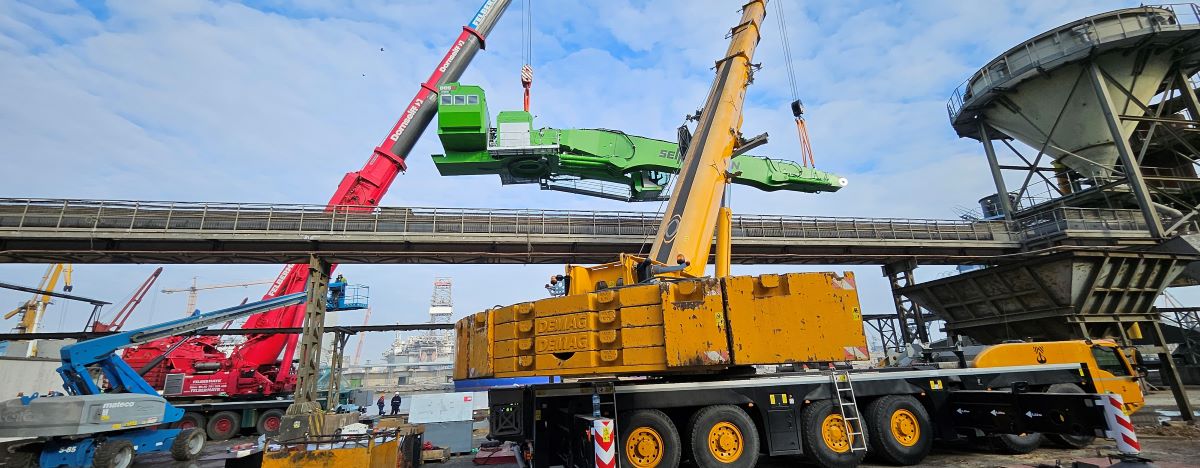 La inceputul acestui an, Terra Romania a anuntat punerea in functiune a unui manipulator gigant Sennebogen 885 SERIE G – ELECTRO, in portul Constanta, cu actionare 100% electrica. Utilajul a fost transportat cu mai mult de 15 autocamioane, iar asamblarea lui a fost realizata de inginerii specializati din echipa tehica a grupului TERRA, sub supravegherea reprezentantilor din partea producatorului german, Sennebogen.