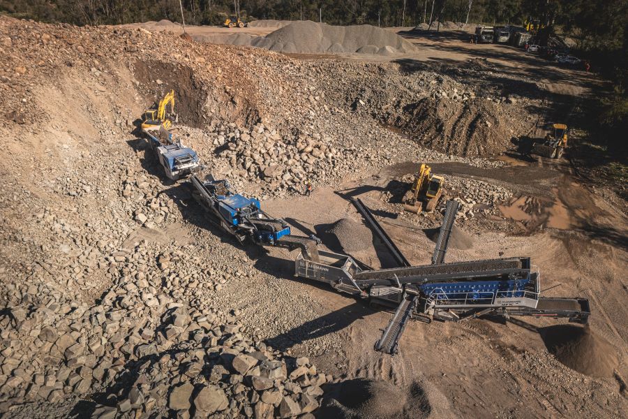 The plant train deployed here consists of a MOBICAT MC 110 EVO2 mobile jaw crusher, a MOBICONE MCO 90 EVO2 mobile cone crusher and a MOBISCREEN MSC 953 EVO mobile classifying screen. While the jaw crusher is used for pre-crushing, the task of the cone crusher in the second crushing stage is to reduce the feed material to manageable grain sizes and pass it on to the screening plant for appropriate classification. Thanks to this mobile solution, the plants can be relocated with minimal effort and are quickly back in production again.
