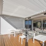 Thanks to the new Algarve Canvas, a part of a rooftop terrace can even be covered by a fixed roof while the other part is covered by a bladed roof.
