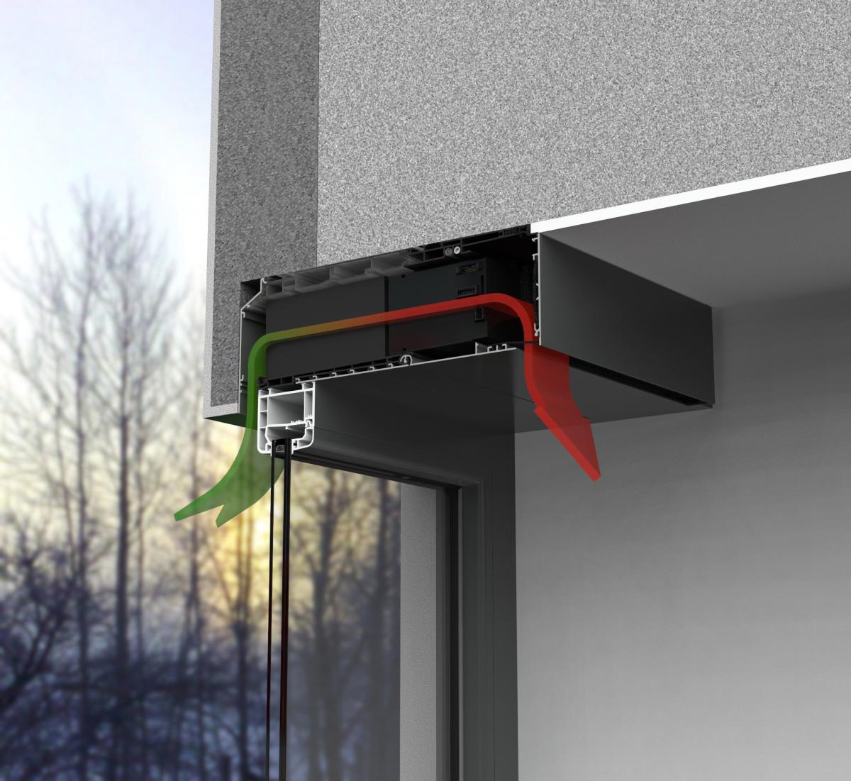 Endura Twist is just as suitable for renovation as for new builds. It can be used as a standalone system, but can also be incorporated into a building management system. It can be installed visibly, clad with drylining systems or plastered, horizontally above a window or vertically to the side of a window. Integration of a vertical sunscreen with ZIP guiding system is possible. With this extensive range of uses, Endura Twist is recommended for all applications in both renovation and new building, which cannot be achieved with a central ventilation system, because of ceiling heights that are too low, for example in residential construction or prefabricated building.