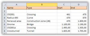• Complexitati ale traseului (intersectii cu alte cai de comunicatii, poduri, pasaje) – elemente ce necesita un management adecvat al lucrarilor pe portiuni specifice sunt definite in Tilos ca sectoare si influenteaza randamentul lucrarilor si viteza de deplasare a masinilor de cale: